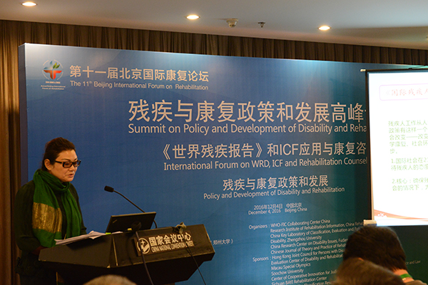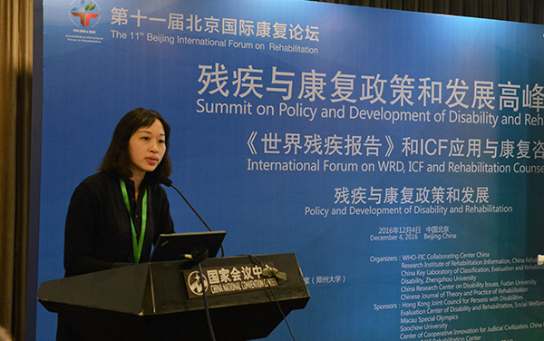 第十一届北京国际康复论坛残疾和康复政策与发展高峰论坛于2016年12月4日在北京国家会议中心举行。本次高峰论坛的主办方为新利客服电话人工服务康复信息研究所/世界卫生组织国际分类家族中国合作中心、中国智力和发展性残疾分级、评估与康复(运动)重点实验室、复旦大学中国残疾问题研究中心和《中国康复理论与实践》杂志,协办单位包括:香港复康联会、澳门社会工作局复康服务综合评估中心、澳门特殊奥运会、苏州大学、中国政法大学“2011计划"司法文明协同创新中心、四川省八一康复中心、中国残疾人康复协会残疾分类研究专业委员会、中国卫生信息学会卫生信息标准化专业委员会功能和残疾信息标准学组。来自国内外残疾和康复机构的100余位专家、学者和残疾康复管理工作者和其它相关人员应邀参加了此次峰会,包括受邀国际和国内知名专家32名,其中有国外专家1名,港澳专家6名。还有来自世界卫生组织合作中心和康复国际等的代表。