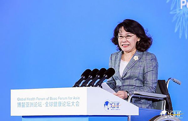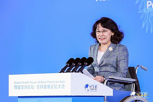 中国残疾人联合会主席张海迪在博鳌亚洲论坛全球健康论坛大会全体大会上发表主旨演讲(摄影/ 张钊)