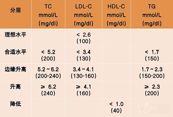 不具备以上情况的个体,按照 LDL-C 或 TC 水平、有无高血压及其他 ASCVD 危险因素个数,将 ASCVD 10 年发病平均危险按 < 5%,5%~9% 和 ≥ 10% 分别定义为低危、中危和高危。