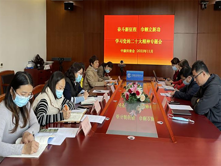 11月1日下午,根据中康党委统一部署,妇委会组织召开“奋斗新征程 巾帼立新功”妇女干部职工学习贯彻党的二十大精神专题学习交流会。中康纪委书记、副主任、总会计师余朝晖、党办主任程军、妇委会委员、妇女干部职工代表参加,会议由党办主任程军主持。