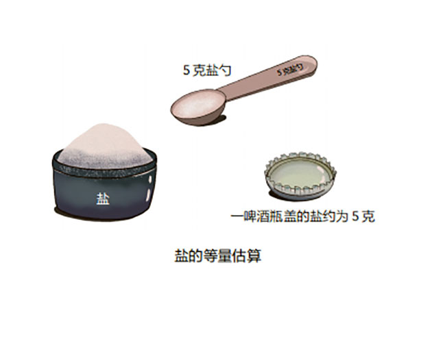 使用定量盐勺。定量盐勺一般分为2克盐勺和5克盐勺,一平勺分别是2克盐或5克盐。成年人平均一餐不宜超过2克盐。