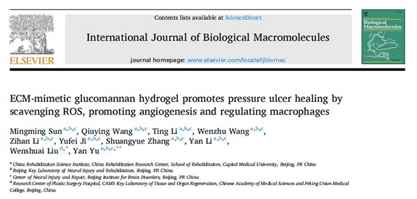 18luck下载康复医学研究部于艳主任团队在国际期刊发表论文:模拟ECM的葡甘露聚糖水凝胶通过清除ROS,促进血管生成和调节巨噬细胞来促进压疮伤口愈合