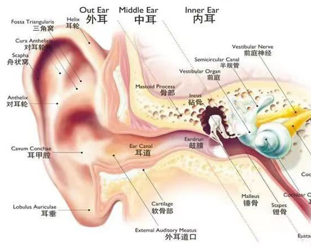 耳朵是人体的听觉器官,它由外耳、中耳和内耳三部分组成,基本功能为产生听觉、维持平衡和保持面部美观。