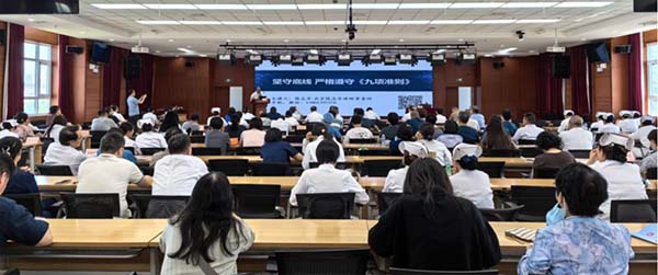 6月17日下午,中康党委在西区四层报告厅举办中康医疗从业人员法制教育培训。中心党委领导班子,纪委委员,党支部书记,职能处室、业务部门负责人及副处长,各科室主任、负责人、副主任,各科室护士长,各科室行风管理员等200余人参加。会议由中康党委委员、纪委书记、副主任余朝晖主持。